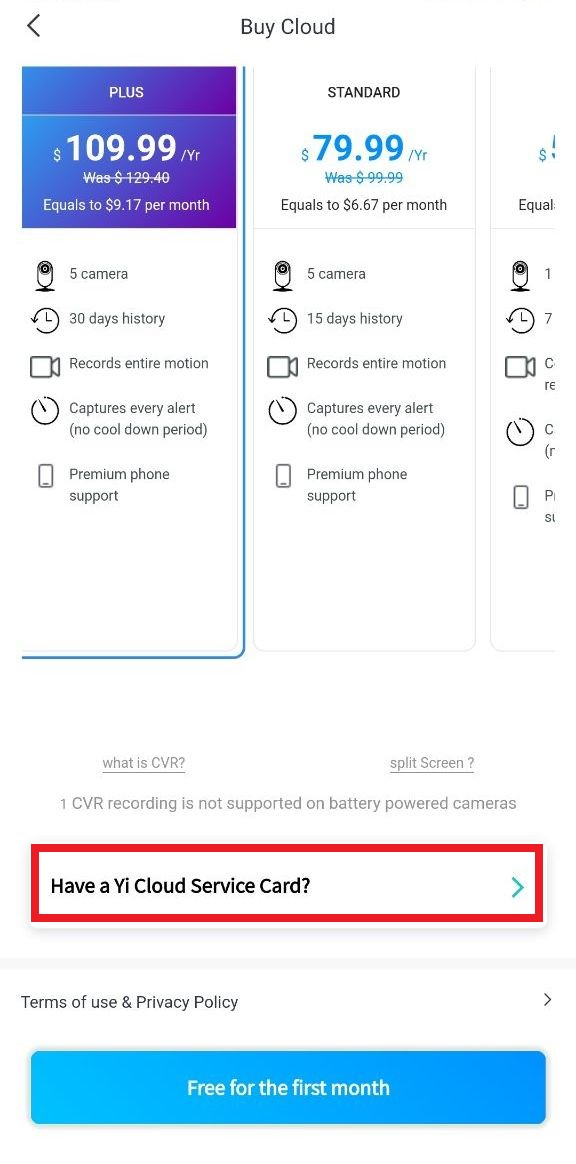 3. Tap on the “Have a Yi Cloud Service Card?“
